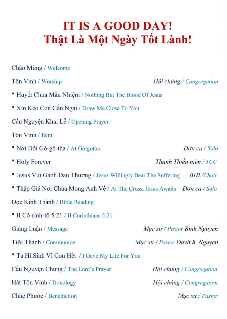 Kính mời Quý con cái Chúa và Thân hữu đến dự lễ Kỷ Niệm Chúa Jesus Chịu Thương Khó